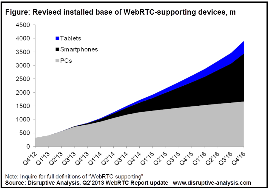 • 875m devices with WebRTC vs. original forecasts of 810m for end-2013